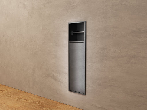 See all the detailsHORNACINA Vertical de 17x60cm, para escobillero empotrado y portarrollos Acabado BLACK GUN METAL Profundidad 10 cm. Fabricada en acero inox. S.30...