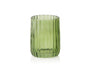 Round green striped glass toothbrush holder.
