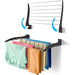 Tendedero de pared ideal para interiores y exteriores (en el baño, encima del radiador, en la terraza...). Color negro. Se pliega con un clic sobre si mismo, ahorrando espacio donde lo tenga instalado. La rejilla está dotada con 7 tubos fabricados en aluminio para tender. Puede contener hasta 10kg. de ropa. Fabricado en aluminio (las varillas) y acero inoxidable (el cuerpo) muy resistentes al paso del tiempo.