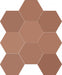 Hexagonal porcelain tile with urban inspiration, size 21.5x25cm, in modern earth tones with a total of 9 pieces featuring strong color variations.
