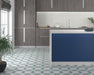 Porcelain tile, 20×20cm format, in an intense navy blue shade.
