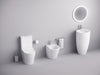 - Bowl with Rimless technology and dual outlet, compatible with wall or floor drains with fixings.