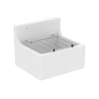 Dump sink with stainless steel grid, 100% made in Italy in glossy white porcelain.