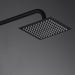 Imex in matte black finish, extendable shower bar, matte black brass faucet body, extra-flat 20X20 anti-limescale showerhead, 35mm ceramic cartridge, includes hose and handle all in matte black.