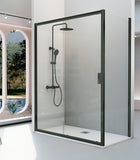 KASSANDRA SIENA Fixed Shower Screen Front + Sliding Door Matte Black Transparent