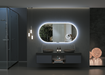 Elliptical LED mirror INDIANA with illuminated acrylic frame and sequential on/off that combines design with functionality by incorporating a x3 magnifying mirror. Manufactured by Ledimex.