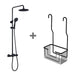 Thermostatic shower column pack + drill-free gel holder basket: round design, with extendable tube from 80 to 120 cm.