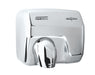 Available in 1.5 mm thick steel with white or black finish or in AISI 304 stainless steel with bright or satin finish. This hand dryer is ideal for high traffic areas. Long-lasting and fully reliable model, with anti-vandal features and designed to be installed in high traffic areas such as airports, shopping centers, hotels, sports centers, large recreational areas, and major official organizations, among others.