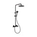 Large shower single-lever in matte black finish, with integrated diverter, S2 water-saving system, and extendable column with round ABS showerhead Ø 300 mm from the BLAUTHERM series by Ramon Soler. Stainless steel telescopic column 880-1460mm, includes single-lever with integrated diverter, ultraslim ABS showerhead Ø 300mm, ABS massage hand shower with 3 anti-limescale positions Ø100mm and 1.75m anti-twist Soleflex hose, S2 water-saving systems with 50% savings, cooltouch anti-scald, temperature limiter, patented anti-corrosion, and high-resistance matte black electrostatic treatment on galvanized surface.