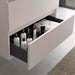 Bathroom cabinet suspended with 2 drawers with soft-close and anthracite onyx gray finished interiors. Integrated finger-pull handle in the cabinet. Front and sides made of 16 mm laminated particle board (E-1 class) with PVC edges.