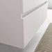 Bathroom cabinet suspended with 2 drawers with soft-close and anthracite onyx gray finished interiors. Integrated finger-pull handle in the cabinet. Front and sides made of 16 mm laminated particleboard (E-1 class) with PVC edges.