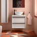 Available versions of 2 drawers, 3 drawers, 4 and 6 drawers, wall-mounted and floor-standing. Possibility to choose cabinet with integrated countertop Sink or cabinet without Sink with countertop. Multiplies the possibilities, making the collection much more flexible.
