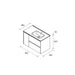 Sink cabinet wall-mounted with 2 drawers with partial extraction and soft-close HETTICH guides and 1 door with anthracite onyx gray interior finish. Integrated recessed handle in the cabinet. Front and sides made of 16 mm laminated particleboard (E-1 class) with PVC edges + PUR glue.