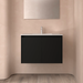 Bathroom furniture wall-mounted with 2 doors with soft-close HETTICH guides and interiors finished in anthracite onyx gray. Integrated finger-pull handle in the furniture. Front and sides made of 16 mm laminated particleboard (E-1 class) with PVC edges + PUR glue.