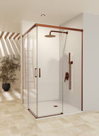 SB_X STYLO Mampara Ducha Cuadrada Oro Rosa Cepillado Transparente