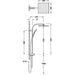 Shower set adaptable to any Tres faucet.With integrated diverter in the shower bar. Color: Steel. Collection: SHOWER ACCESSORIES. Adjustable stainless steel shower head: 300x300 mm. Sliding and adjustable holder for hand shower. Anti-limescale hand shower: 96x110 mm. (3 spray types). Satin hose.