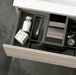- Cabinet with 2 soft-close Drawers with full extension and self-closing system and textile interior. Upper Drawer with organizer. Lower Drawer of great height to increase capacity. The cabinet is made with 16 mm laminated board and 19 mm front. Painted glass detail on the lower Drawer.
