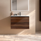 Suspended bathroom furniture from the GRANADA series by Visobath with two industrial-style drawers, with built-in handles. Made with a laminated or matte lacquer finish of the latest generation, very resistant and with a natural look. Available in countless combinations of furniture color and handle color.