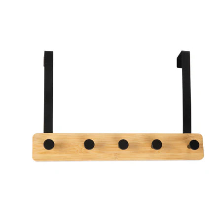 Ver todos los detallesPerchero de puerta hecho de metal negro y madera de bambú. Este perchero está diseñado para colgarse detrás de la puerta, evitando así tener que ha...