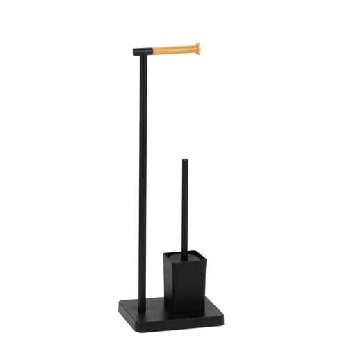 Ver todos los detallesEl portarrollos y escobilla de metal negro y madera, consta de una estructura de metal negro y base cuadrada, soporte de madera y una escobilla de ...