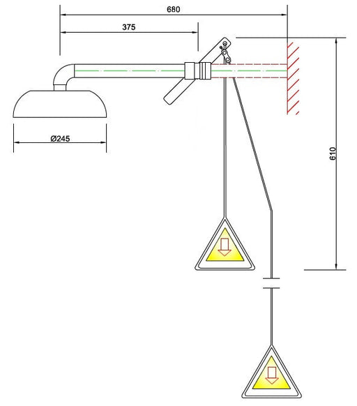 Ver todos los detallesDucha de emergencia mural, con cabezal de acero inoxidable, pintada con pintura en polvo de alta calidad de color amarillo, fabricada por Krusman.E...