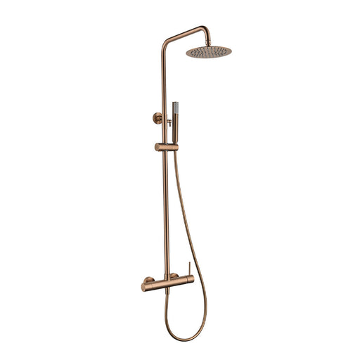 Ver todos los detallesConjunto de ducha monomando de la serie MONZA fabricado por Imex en acabado oro rosa cepillado, barra de ducha extensible, cuerpo de la griferia de...