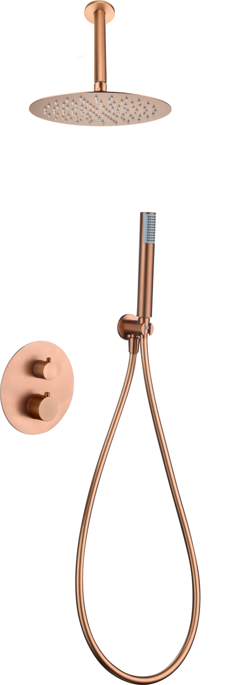 Conjunto Ducha Termostático Empotrado Oro Rosa Cepillado de la serie GENOVA / PIAMONTE fabricado por Imex.Más información: Color: Oro Rosa Cepilla...