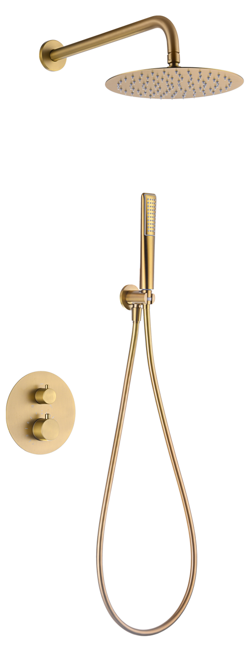 Kit Ducha Termostático Oro Cepillado de la serie MONZA / TIVOLI fabricado por Imex.Más información: Color: Oro Cepillado. Tipo de instalación: Su...