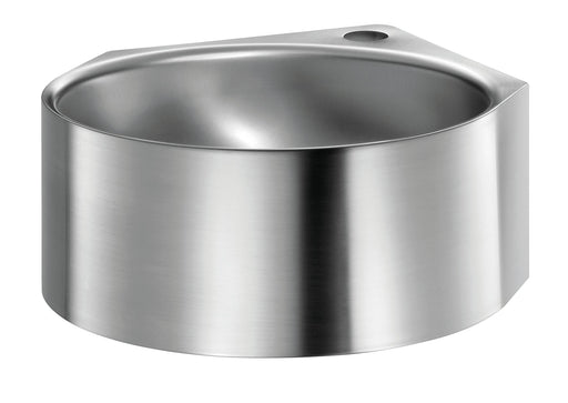 Ver todos los detallesLavamanos esquinero mural redondo (ángulo de 90º) sin rebosadero y sin grifería, fabricado en chapa de acero inoxidable AISI 304 bacteriostático, d...