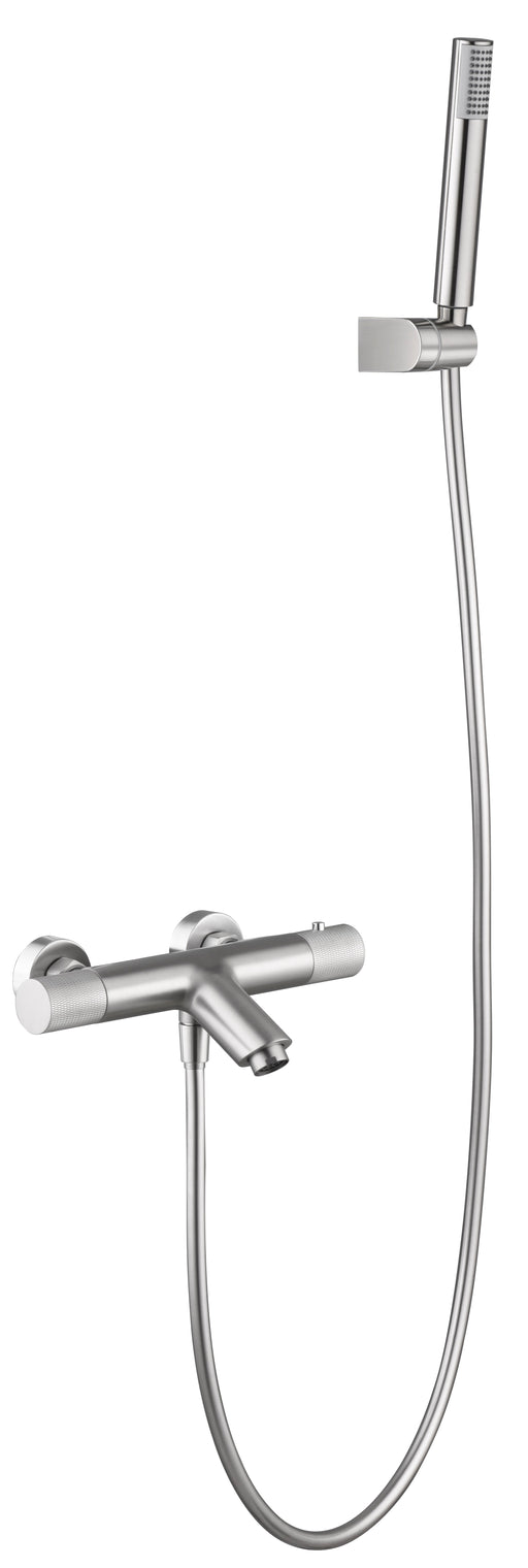 Ver todos los detallesConjunto de bañera termostático serie LINE fabricado por Imex en acabado cromado, barra de ducha con soporte regulable en altura, cuerpo de la grif...