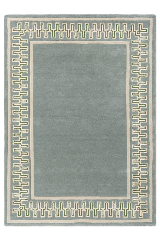 Ver todos los detallesA playfully geometric border, echoing patterns from classical antiquity, frames this hand-tufted rug, set in smart contrasting tones of jade and fl...