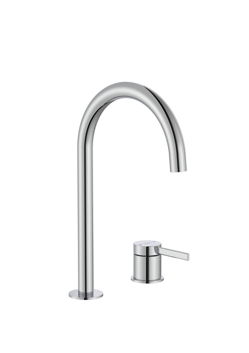 Mezclador monomando para lavabo con caño alto y cuerpo liso. Incluye enlaces de alimentación flexibles. No incluye desagüe. Apertura en agua fría C...