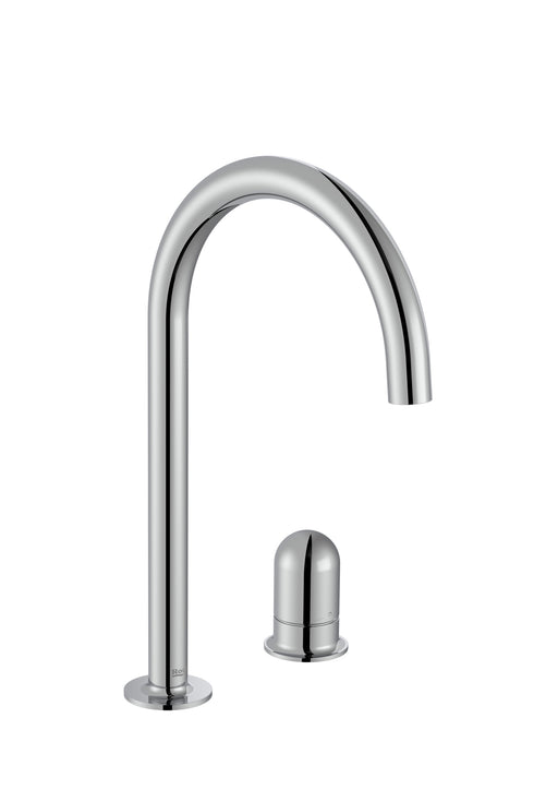 Ver todos los detallesMezclador monomando de cuerpo liso y caño alto con maneta Dome para lavabo. Incluye enlaces de alimentación flexibles. Apertura en agua fría. Desag...