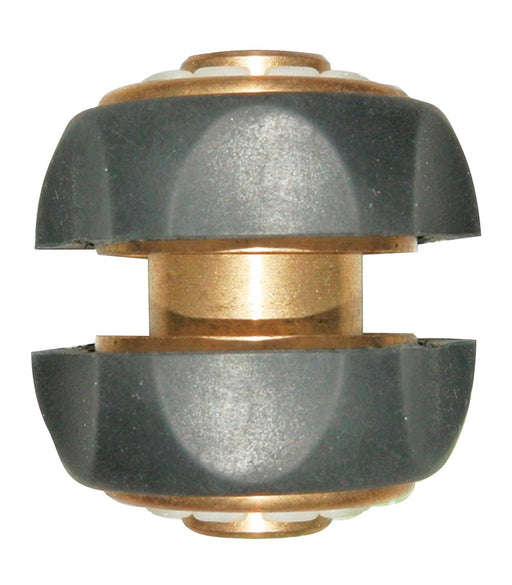 Conector para manguera de 13-16mm con corte de agua. Lleva una válvula para cortar o abrir el agua.Bimaterial: Goma + ABS. Suministrado en blister.