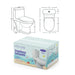 Inodoro de una sola pieza con salida vertical. Entrada de agua (de frente) inferior a la izquierda, embalado en una sola caja, compuesto de Tanque con Mecanismo instalado, Manguito NO incluido, con Tapa PP, Mecanismo CE, Bisagras de plástico caída normal, Pulsador 38 mm cromado, Descarga tipo Rimmles Garantia de por vida en Ceramica, y 3 años en componentes, Certificado CE, esmaltado antibacteriano.