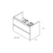 Mueble de baño para instalación suspendida de fondo 45 cms con 2 cajones espaciosos con cajón blanco metálico Hettich con barandilla de cierre amortiguado y apertura total. Tiradores fresados en DM tipo uñero de 45º.