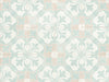 Azulejo porcelánico de aspecto hidráulico tradicional, formato 20×20cm, en delicadas tonalidades blanco, azul y coral de aspecto desgastado.