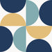 Moderno azulejo de inspiración hidráulica, en 20x20 cm, con un desenfadado patrón de semicírculos inspirado en tendencias de aire retro en tonalidades aguamarina, azul marino, amarillo y blanco.