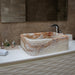 Lavabo de onix verde natural con su exquisito diseño rectangular, es una obra maestra lujosa para baños grandes o pequeños con estilo. Nuestro lavabo está tallado en piedra maciza pura, ofreciendo una combinación perfecta de elegancia y robustez. Tiene un encanto rústico que solo el auténtico ónix puede transmitir, con sus ricas y magníficas vetas creando un bosque encantado de patrones únicos.