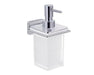 Ver todos los detallesATENA dosificador mural con vaso de cristal y soporte mural fabricado en latón cromado y acero inoxidable. Bomba metálica. Acabado cromo brillo. Po...