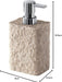 Dispensador de jabón líquido de la serie Aries, fabricado en resina termoplástica y color beige arena. Este producto combina funcionalidad y estética, aportando un toque elegante a su baño o cocina.