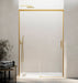Mampara de ducha frontal transparente con puerta corredera, perfilería minimalista en aluminio oro con cristales templados de 6mm y tratamiento antical. Doble rodamiento en nylon silencioso con diseño actual sin perfilería inferior. Medidas a elegir. Entrega inmediata. Altura 196 cm. Garantía 3 años. Mampara reversible.