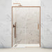 Mampara de ducha frontal transparente con perfilería minimalista de aluminio cobre de tan solo 20mm. Cristales templados de 6mm con tratamiento antical. Entrega inmediata.