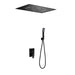 Empotrado de ducha serie SUMATRA, cuerpo de griferia 4 vías, rociador de 3 vias 48X59 con premarco, cartucho monomando 35mm, salida de agua con flexo y mango, todo en acabado negro mate. Incluye box de registro.