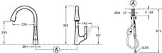 - Grifo de cocina con ducha extraíble, caño giratorio 360º, mango personalizable en 3 colores.