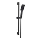 Maneral y soportes fabricados en ABS de alta resistencia, la barra de ducha en acero inoxidable. La ducha de mano está acabada en negro mate, aporta un toque elegante a su baño. Dispone de un sistema antical que le facilitará el mantener, en perfecto estado, este producto. La salida de este maneral le dará una relajante ducha. Esta ducha de mano cuadrada tiene 1 posición. Este producto incluye todo lo necesario para una correcta y sencilla instalación en unos minutos.