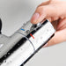 - Seguridad ante todo en el uso diario del grifo termostático con selector integrado, tu seguridad y el bienestar de tu familia son lo principal, por lo que incorporamos un botón de seguridad para evitar quemaduras, escaldados u otros incidentes relacionados con la temperatura, además, el interior del flexo de 200 cm, es antitóxico, con gran resistencia a los cambios de temperatura