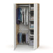 El armario Noa es muy versátil. Se puede utilizar como uso individual, en el caso de contar con poco espacio. O también, poner uno al lado de otro y crear un gran armario. A demás, se puede adaptar la barra de colgar según el estilo de tu ropa, o sencillamente quitar si prefieres una sola.Cinco huecos para almacenamiento Dos estante regulables y dos fijos Dos barras de aluminio para colgar Barra de colgar inferior regulable Trasera interior blanca para mayor luminosidad Tiradores con forma de curva en la propia puerta Material: aglomerado de partículas y melamina de alta densidad Necesita montaje. No se incluye las siguientes herramientas: destornillador, martillo, cinta americana, metro...