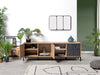 Mueble de TV de estilo industrial que aporta un estética elegante y te permitirá poner la pantalla de televisión a la altura perfecta. Tiene 2 puertas donde podrás almacenar lo que desees y 2 cajones con una especial imitación de marmol negro. Sus estantes centrales son perfectos para tu reproductor o codificador.Guías metálicas en cajones 2 Estantes regulables Estructura inferior de plástico ABS. Altura patas: 14 cm Tiradores de plástico ABS en las puertas Tiradores expulsores en los cajones Material: aglomerado de partículas y melamina de alta densidad Necesita montaje. No se incluye las siguientes herramientas: destornillador, martillo, cinta americana, metro...