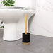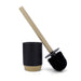 La escobilla para inodoro de la serie ARIES forma parte de un set que combina el color negro y la madera. Es perfecto para baños con un ambiente rústico o con colores oscuros.